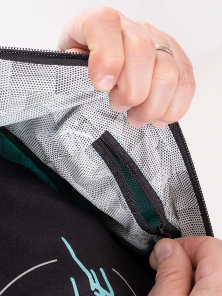 Der Kinnbereich der Kapuze ist mit Neopren unterlegt. Der lange Reißverschluss mit Abdeckband ist so positioniert, dass er den Kinnbereich nicht berührt. Der Reißverschluss lässt sich hoch bis zur Nase schließen oder bei gesteigerter Aktivität öffnen und belüften. Die doppelten Handgelenkbündchen sind aus extrem flexiblem Neopren mit glatter Innenfläche für bessere Wasserdichtigkeit. Die Manschetten können mit einem verstellbaren Nylonüberzug enger gestellt werden. Verstellbare Bundweite dank umlaufendem Gummizug.