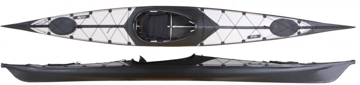 Großer Tourenfaltkajak Einer mit robuster Haut aus der bewährten PVC/PU-Mischung. Die Bootshaut ist mit zwei Ladeluken auf Bug und Heck für eine einfache Beladung, mit D-Ringen, Deckverspannungen und mit Kielstreifen ausgerüstet. Das Gerüst aus eloxiertem Aluminium ist zwar pflegeintensiv, jedoch wurde dem leichteren Gewicht und kleineren Packmaß die Präferenz gewährt. Der zum Lieferumfang gehörende Packrucksack nimmt neben dem Boot, Hänge-Sitz, Schenkelstützen auch das im Lieferumfang enthaltene RepSet auf.