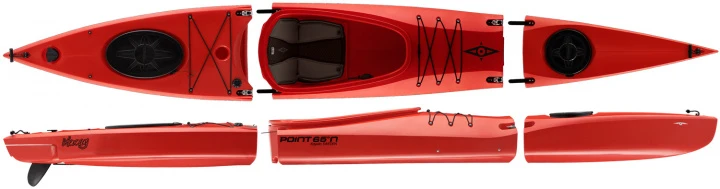 Schlank, lang und belastbar. Dieses Kajak wird aus drei Teilen zusammengesteckt. Da das Frontteil in das Mittelteil paßt, ist das Packmaß rekordverdächtig. Alle drei Teile sind mit dem patentierten Verschlußsystem blitzschnell und stabil zu befestigen.
